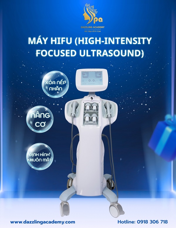 • Máy HIFU (High-Intensity Focused Ultrasound): Sử dụng sóng siêu âm hội tụ để xóa mờ nếp nhăn và nâng cơ, định hình khuôn mặt, mang lại vẻ đẹp tự nhiên và lâu dài.